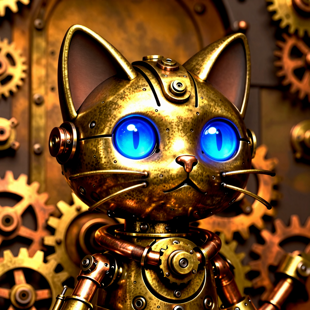 一只可爱的机械猫,融合了蒸汽朋克和可爱风格